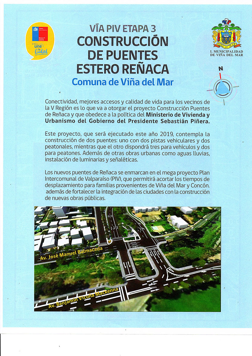 En un punto de prensa, realizado el jueves 19 de diciembre, se dio a conocer el estado de avances de los puentes Vía PIV. Según se informó la primera etapa estaría por concluir, dando inicio a una segunda fase que involucra la construcción de los puentes propiamente tales.